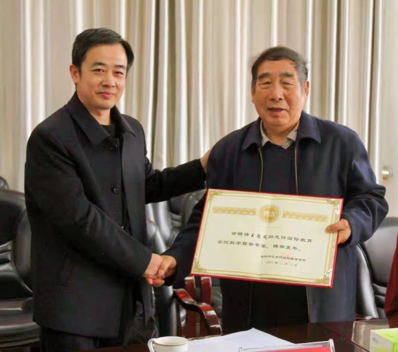 11月16日,我院教学督导专家聘任仪式暨座谈会在逸夫楼302会议室举行。督导专家王忠阁、赵军、黄学玉和学院班子成员、部分教师代表参加会议。会议由党委副书记付春锋主持。