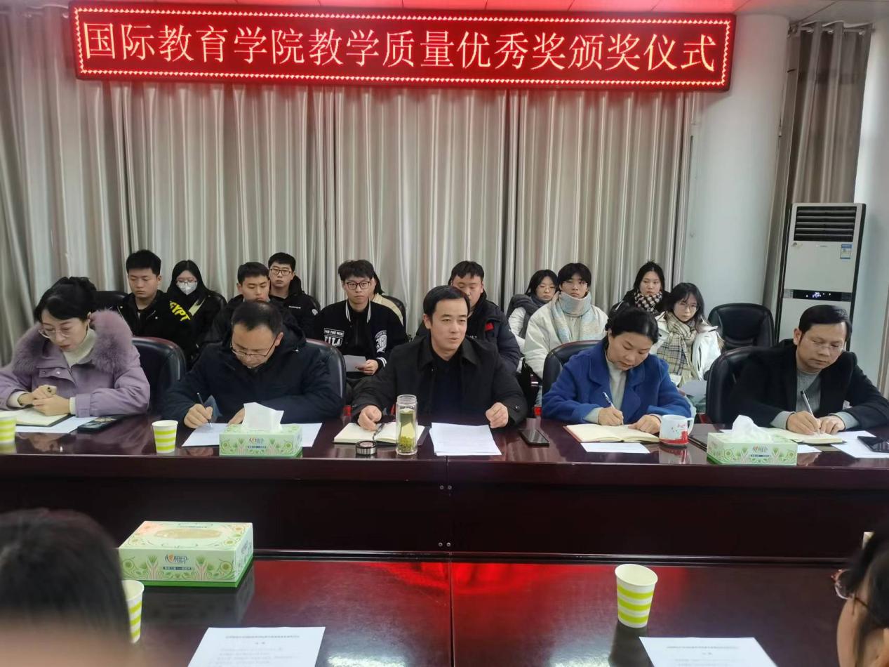 12月15日下午,太阳成集团tyc9728在逸夫楼302会议室举行中外合作办学项目教学质量优秀奖颁奖仪式,党委班子成员、20名获奖教师和部分学生代表参加仪式。党委副书记付春锋主持仪式。