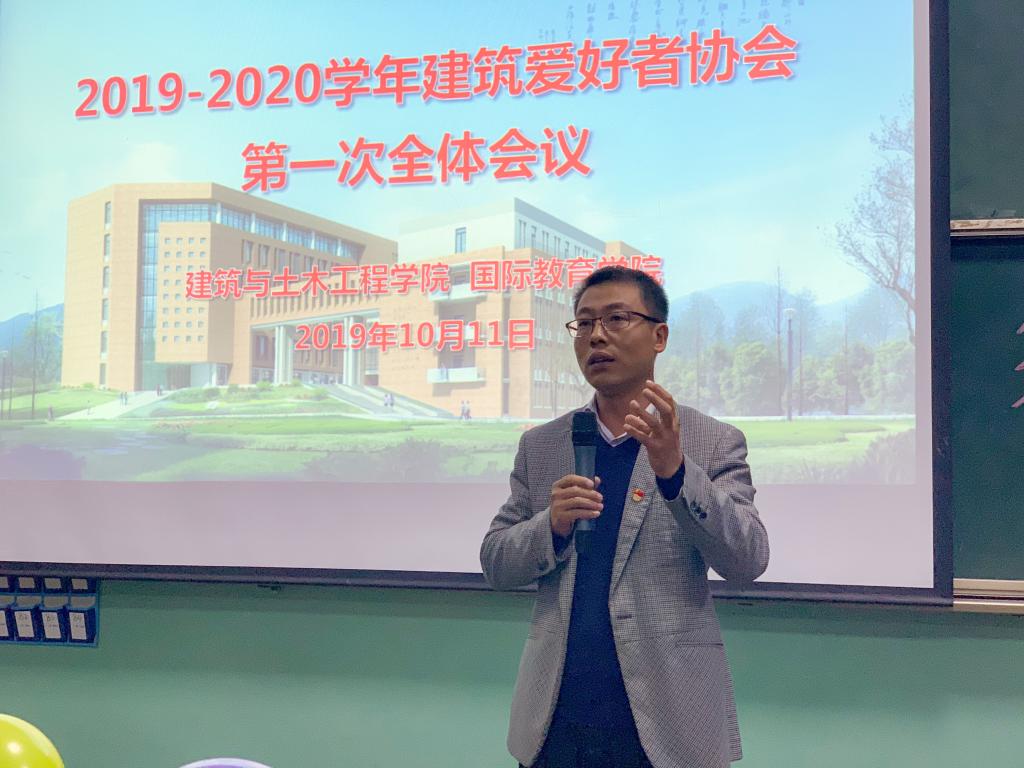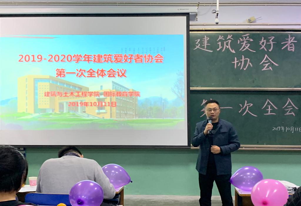 10月11日晚,信阳师范学院建筑与土木工程学院与太阳成集团tyc9728共建社团——建筑爱好者协会第一次全体会议在教二楼第五阶梯教室召开。建筑与土木工程学院党委副书记方明科、太阳成集团tyc9728党委副书记姚新春、社团指导老师张伟、建筑与土木工程学院团委书记张晓博、太阳成集团tyc9728团委老师许孟杨、社团主要学生干部以及2019级新成员代表参加了会议。会议由协会新闻信息部干事伊梦主持。