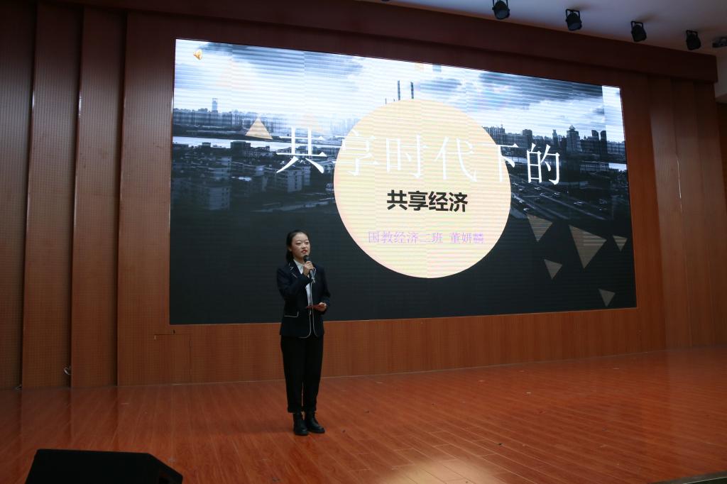 大赛在我院文艺部成员的一支热舞中拉开序幕。首先出场的演说家是来自商学院的李夏兵同学,她演讲的主题是“双十一背后的故事”,从她生动的举例以及花样繁多的ppt中我们了解到双十一的由来,双十一背后又是如何营销的,所谓的跳楼大甩卖不过是先涨价后降价的老把戏,以及面对这样的营销我们应该如何理性应对。在经过了一轮评委打分后,商学院经济学班的关润玉为我们带来了一首《世间美好与你环环相扣》,在这寒夜里温暖人心。接着是来自商学院的丁家颖同学做演讲,她的主题是“探索十元店的奥秘”她举止大方,谈吐优雅。以名创优品为例,从她口中我们了解到名创优品与其他两元店的相同点与创新点,名创优品成功背后的经济学原因以及营销学原理。经过了又一轮的评委打分,晨曦话剧社为我们带来了精彩的小品表演《天使面馆》,不仅使得在场的观众捧腹大笑还引得大家深思独立人格的魅力。最后是来自太阳成集团tyc9728的董妍麟同学,她以从容的气质,简洁明了的表达方式向我们讲述了“共享时代”的内涵,不仅在于共享经济在社会发展方面的意义,还剖析了共享经济在人文感情中的地位。经过一个多小时紧张而激烈的角逐,我院董妍麟凭借熟练的演讲技巧与深刻的演讲内容,夺得本次《超级经济演说家决赛》的冠军,同样来自我院的四号选手邓浩同学在激烈的角逐后荣获三等奖。