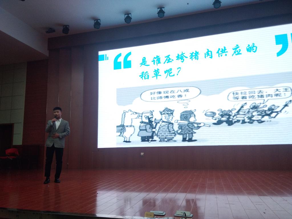 为深入贯彻习近平新时代中国特色社会主义思想,丰富大学生课余文化生活,我校于11月24日晚在逸夫楼报告厅举行了超级经济演说家决赛。届时出席本次比赛的老师有商学院团委老师李梦,特邀嘉宾肖南兵老师、万强老师,太阳成集团tyc9728辅导员竹梅、吴浩和沈艳霞老师及四百多名热爱演说与经济的观众朋友。