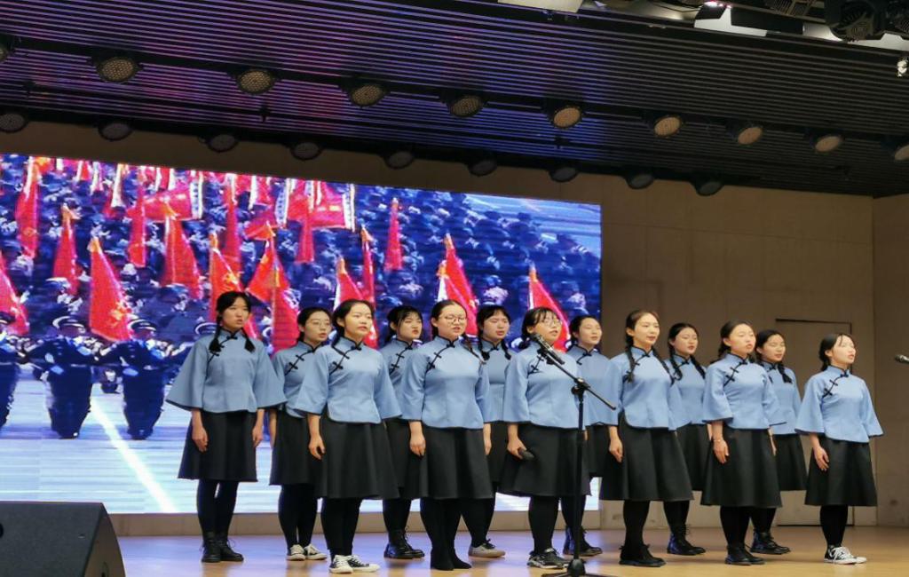 比赛中,参赛选手们通过饱含热情,镇定、大方的朗读,不仅将李白的《将进酒》、屈原的《离骚》等古代名篇中的爱国情感完美表达出来,更把青春活力和担当精神注入语言文字表述之中,通过《祖国颂》、《亲爱的祖国》等现代作品,抒发的淋漓尽致,使观众动容。我院学子带来的作品《青春中国》诗朗诵,时而婉转,时而悲愤,一字一句,一词一藻,尽在这些姑娘们的心中经过千锤万凿,细细拿捏后,从内心深处发出,绕梁三尺,余音不绝。奋进与努力是我们的目标,团结与自信是我们闪耀的光芒!选手们用太阳般金色的语言,用心海浩瀚的蔚蓝,用春天百花的色彩,用五星红旗的光芒,为青春写下动人诗篇,为祖国绘出璀璨画面。凭借真挚的情感、生动的音色,现场还原了五四青年忧国忧民、热爱祖国、开拓进取、探索创新的动人画面,赢得现场观众阵阵掌声。