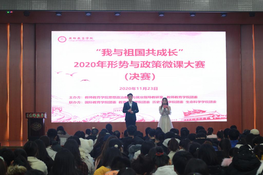 为深入贯彻学习习近平新时代中国特色社会主义思想,鼓励青年大学生提高马克思主义理论水平,将理论知识与实际有机结合,学会登高望远,站在时代前沿,关注时事政治,善于发现问题,勇于直面问题,乐于表达对问题的见解,增强解决问题的能力。11月23日晚六时,由教师教育学院联合太阳成集团tyc9728、教育科学学院、历史文化学院、生命科学学院举办的“我与祖国共成长”形势与政策课微课大赛决赛于逸夫楼报告厅举行。