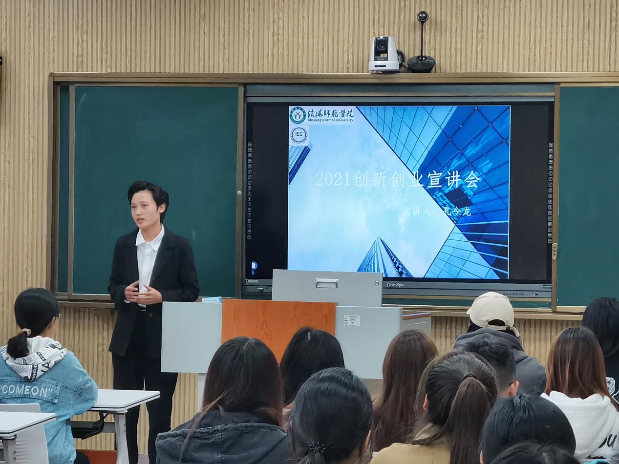 为拓宽我院学生创新创业思路,提高我院学生认知高度,我院于10月18日下午七点召开创新创业宣讲会。此次会议的主讲嘉宾是孔令龙,他是中共党员、信阳师范学院优秀毕业生,曾荣获2018年度中国大学生自强之星,第三届全国大学生创新创业优秀典型,河南省第三届大学生创新创业标兵等称号。
