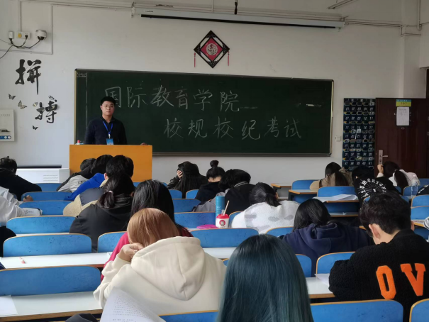 此次校规校纪考试以《学生手册》为主要内容,包括学生管理、行为准则、评优评先、奖学金评比、违纪处分等多方面。题型包括单选、多选、填空、简答四部分。考试期间,同学们上交手机认真答题,自觉遵守考场纪律。监考人员恪尽职守,严格执行考试实施程序,维护考场纪律,如实记录考试情况。