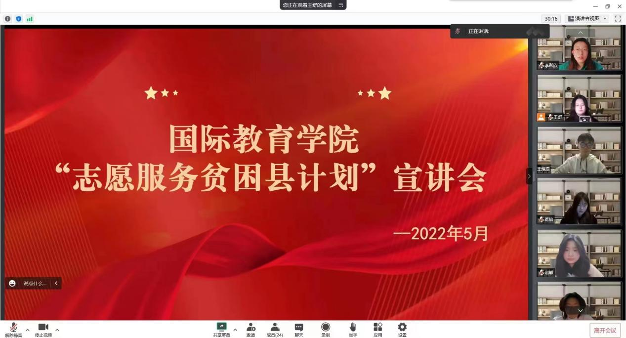 为让同学们更加深入了解“大学生志愿服务贫困县计划”,动员同学们积极投身于贫困县志愿服务工作。我院于5月10日举行了“志愿服务贫困县计划”线上宣讲会。