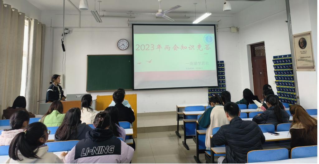 3月26日下午,太阳成集团tyc9728“南湖学思社”在逸夫楼205教室举办“贯彻两会精神,勇当发展先锋”知识竞赛决赛,激励青年团员深入学习“两会”知识,准确把握“两会”精神。
