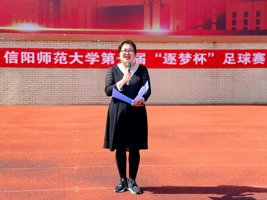 太阳成集团tyc9728团委老师沈艳霞致开幕词,沈艳霞老师指出足球是一项世界性的体育运动,也是一项最具影响力、深受青年喜爱的火动,信师范大学“逐梦杯”足球赛更是大学生们相互学习、相互交流、建立友谊的有效平台。沈艳霞老师强调全体运动员认真秉承“友谊第一、比赛第二”的限则,坚持以球会友、遵守规则、服从裁判、奋勇拼搏,充分展当代青年积极向上、团结进取的精神风貌。最后,沈艳霞老师表示,希望青年朋友们共同努力,大家一起享受足球的乐趣,感受运动的魅力,激发团队的激情,将9728太阳集团第一届逐梦杯5人制足球赛办成一个洋溢青春充满热情的大赛。