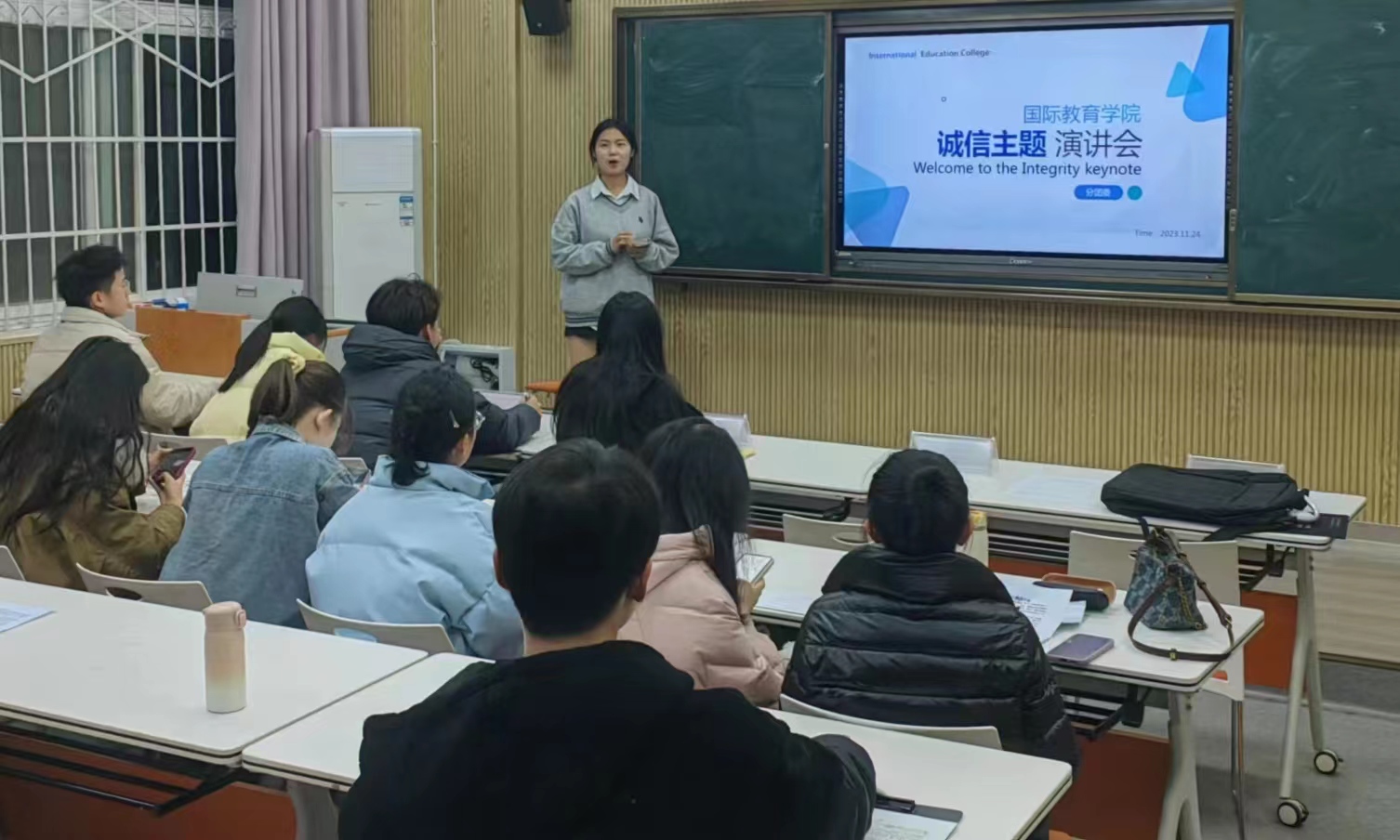 为深入贯彻落实习近平新时代中国特色社会主义思想,大力培育和践行社会主义核心价值观,传承和弘扬诚信文化,引导广大青年学生树立诚实守信、自立自强的人生观,太阳成集团tyc9728于2023年11月24日在逸夫楼201教室举办诚信演讲会活动。