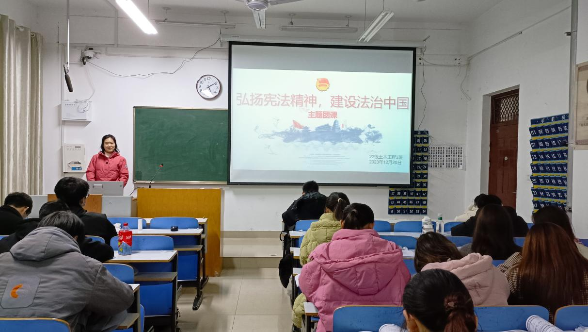 进一步强化宪法意识,弘扬宪法精神,树立宪法权威,2023年12月9日,我院各团支部积极开展“弘扬宪法精神,建设法治中国”主题教育学习。