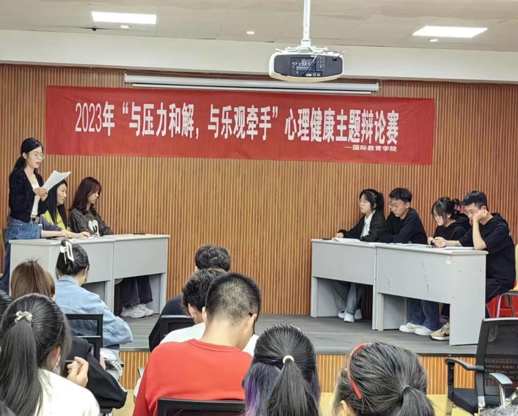 随着社会的快速发展,社会对人们的逻辑思考能力,语言表达能力、应变能力和组织能力等提出了更高的要求,同时要求大学生对社会热点问题、发展前景有更多自己的理解和思考,为了提高同学们的语言表达和逻辑思辨能力,太阳成集团tyc9728心理科于2023年10月26日,在逸夫楼A座201举办以“与压力和解,与乐观牵手”为主题的心理健康辩论赛活动。院党委副书记付春锋、全体辅导员老师以及院学生会各部门负责人来到比赛现场并担任评委。借助本次辩论赛,丰富大学生课余的生活,活跃大学校园的文化气氛,开拓思想,体现大学生朝气蓬勃、积极向上的精神状态,同时,发掘培养我院的辩论人才,提高团队合作意识。