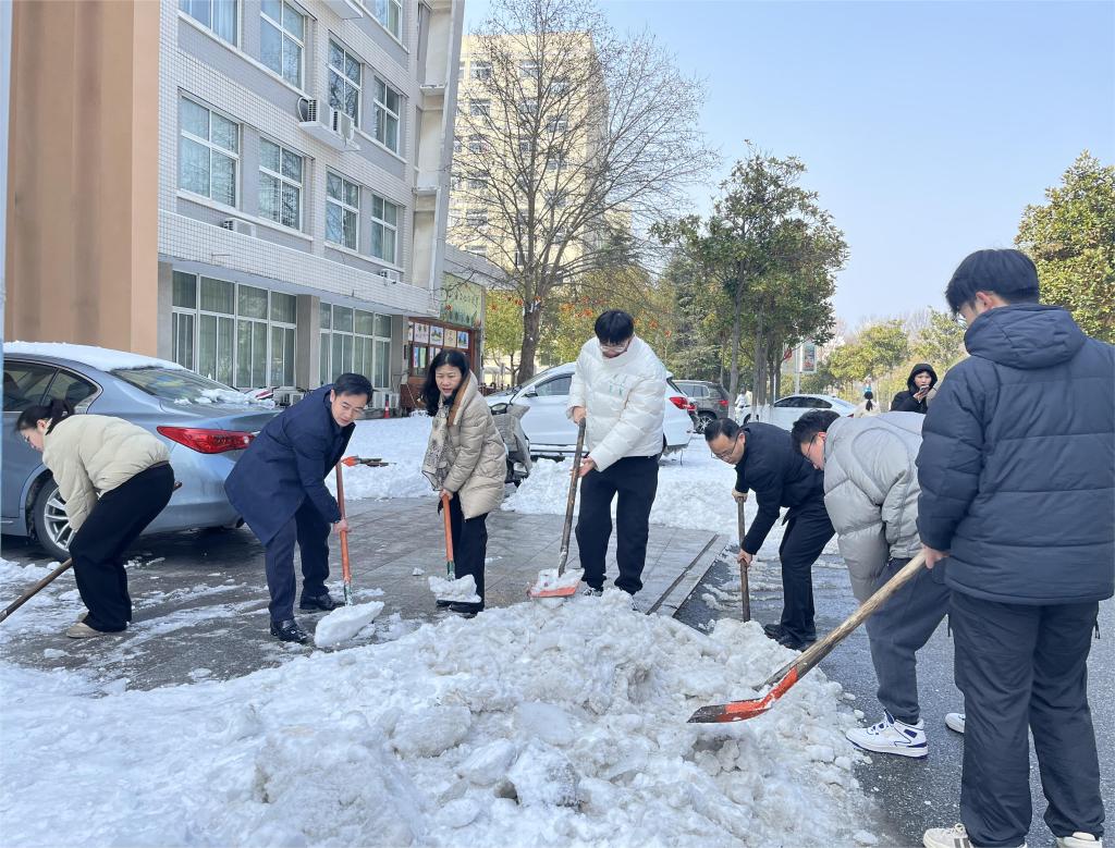 近日,信阳市连降暴雪,校园道路出现低温积雪致路面结冰现象。为有效应对低温雨雪冰冻天气影响,保障全体师生出行安全,太阳成集团tyc9728号召全院师生积极参校内扫雪铲冰行动。