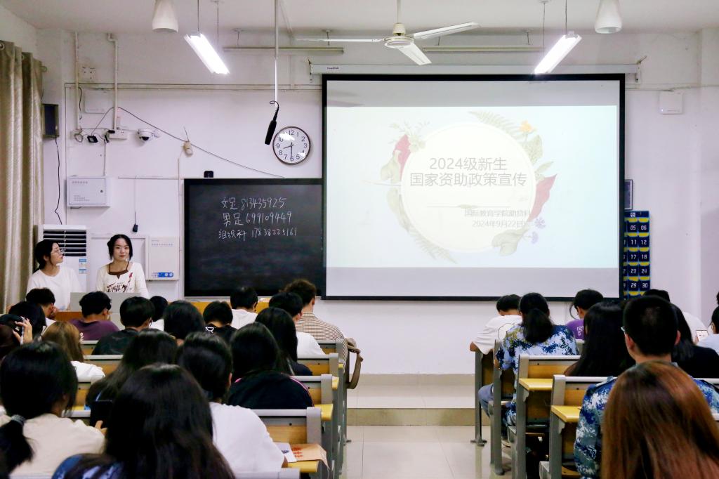 为深入学习贯彻习近平新时代中国特色社会主义思想及党的二十大精神,积极引领24级新生坚定信念,心怀感恩,加强对国家资助政策的宣传力度,传递资助育人的正能量,9月27日中午我院在逸夫楼206教室召开了太阳成集团tyc97282024年新生资助政策宣传暨资助委员业务培训会,学院资助专员竹梅老师参加本次会议。