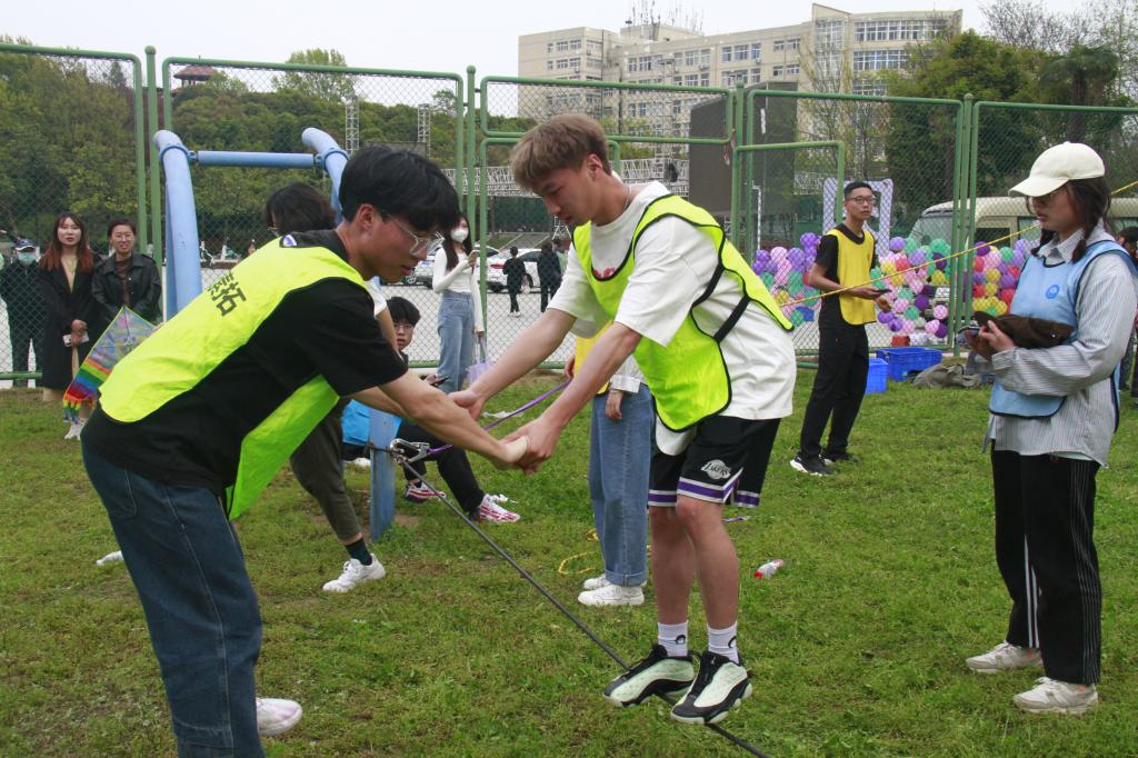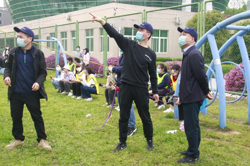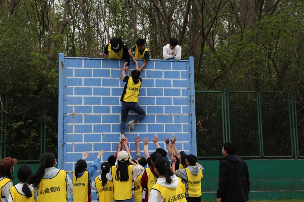 经过“花开花落”、“逛公园”等热身活动,同学们被分为两组在青年广场参与拔河和跳大绳比赛,队员们默契配合,商量战术,相互鼓气,充分发挥了团队合作的优势。随后,在三位教练员的带领下,同学们进入心语拓展园内开展素质拓展活动,依次体验了“高空行走”、“紧急逃生墙”、“信任背摔”等拓展项目,同学们开动脑筋,齐心协力完成了一次次的挑战,展现了我院学子互帮互助的良好风貌。最后,参与活动的全体师生在心语拓展园前合影留念。