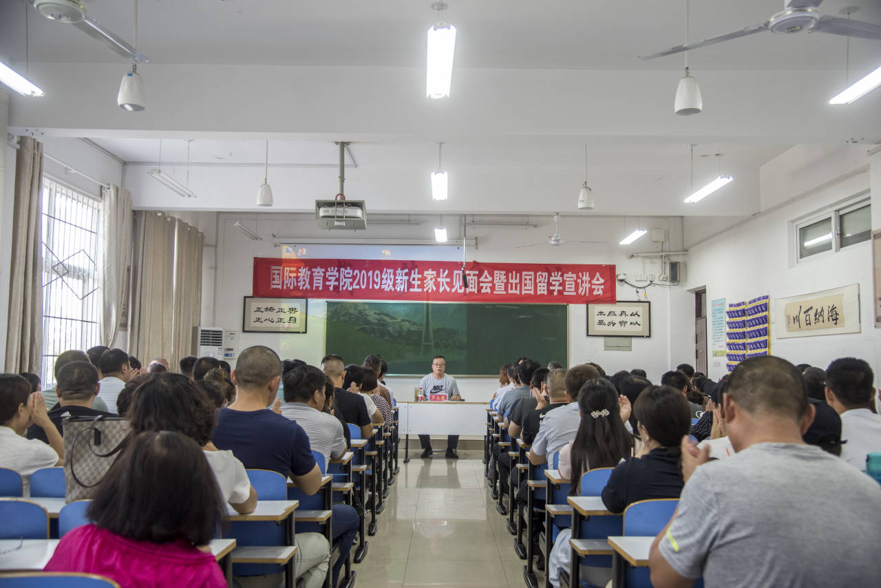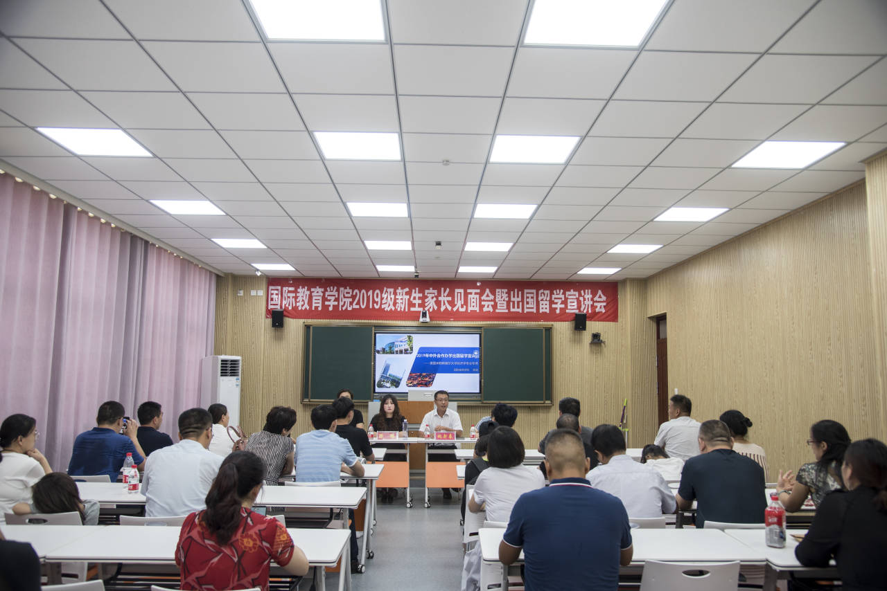 党委副书记姚新春介绍了我院的学生管理制度及相关注意事项,对2019级新生寄予厚望,希望新生争做时代青年,接过实现中华民族伟大复兴的接力棒,立鸿鹄志,做奋斗者,求真学问,练真本领,乘新时代春风,脚踏实地学习,德智体美劳全面发展。他强调要在语言课及专业课程学习上多下功夫,利用好学院提供的宝贵机会,顺利出国,成功与国外接轨,不给自己的校园生活留下遗憾。