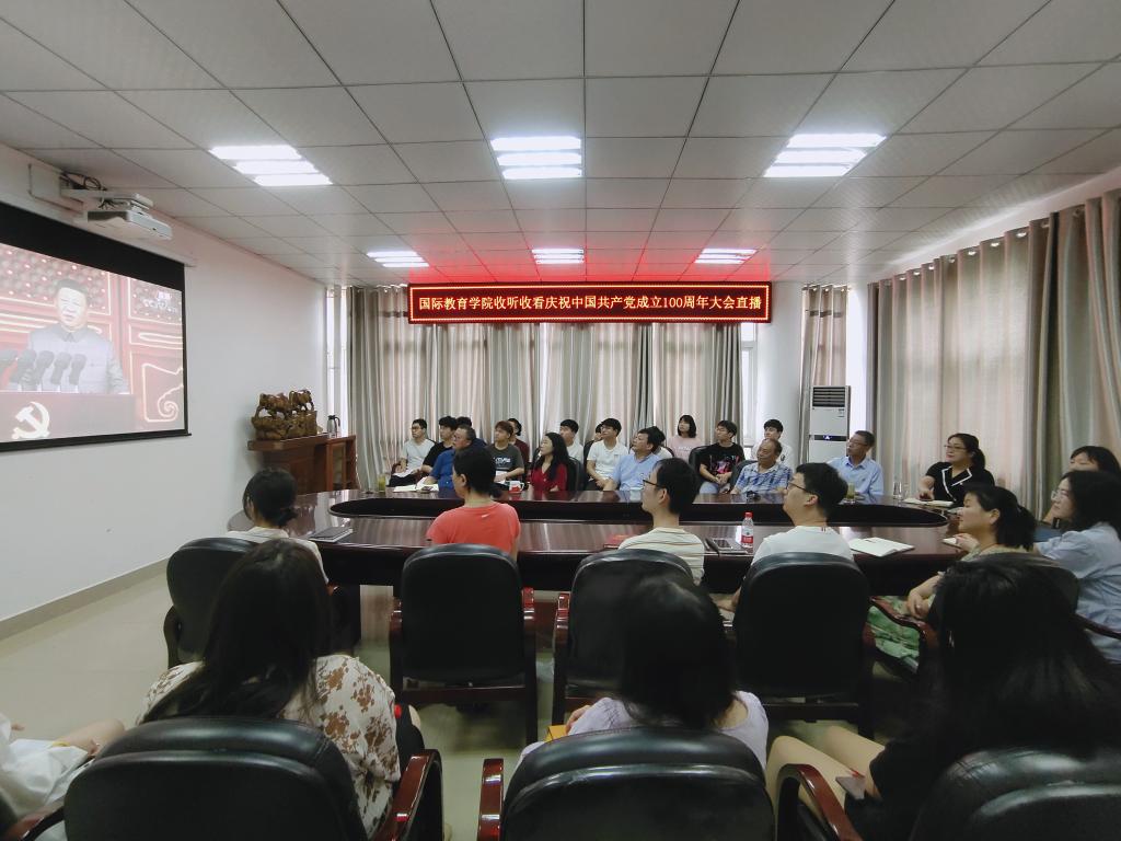7月1日上午8时,庆祝中国共产党成立100周年大会在北京天安门广场隆重举行。中共中央总书记、国家主席、中央军委主席习近平出席并发表重要讲话。太阳成集团tyc9728在逸夫楼302会议室集中观看大会直播,全体教职工、学生代表参加。