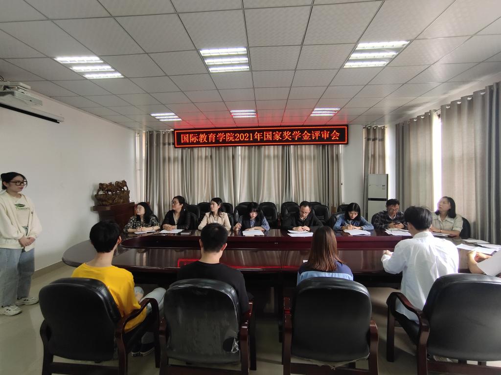 为认真贯彻落实教育部关于国家奖学金评审工作的相关文件精神,确保我院国家奖学金评审程序规范、结果公正,9月27日,学院在逸夫楼302会议室召开2021年度国家奖学金评审工作会。由党委副书记付春锋、各年级班主任、辅导员组成评审团,对国家奖学金获得者进行民主评定。会议由沈艳霞主持。