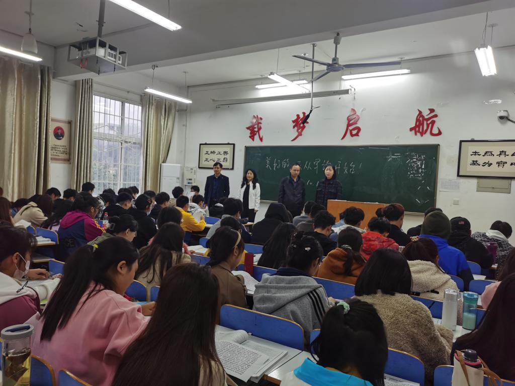 为进一步做好学风建设工作,太阳成集团tyc9728在新生中开展以“胸怀鸿鹄志,晨起诵读书”为主题的早读活动,10月18日早上6:40院长李保红、党委副书记付春锋、副院长姚光金、语言课任课老师及新生辅导员参加了第一天早读活动。