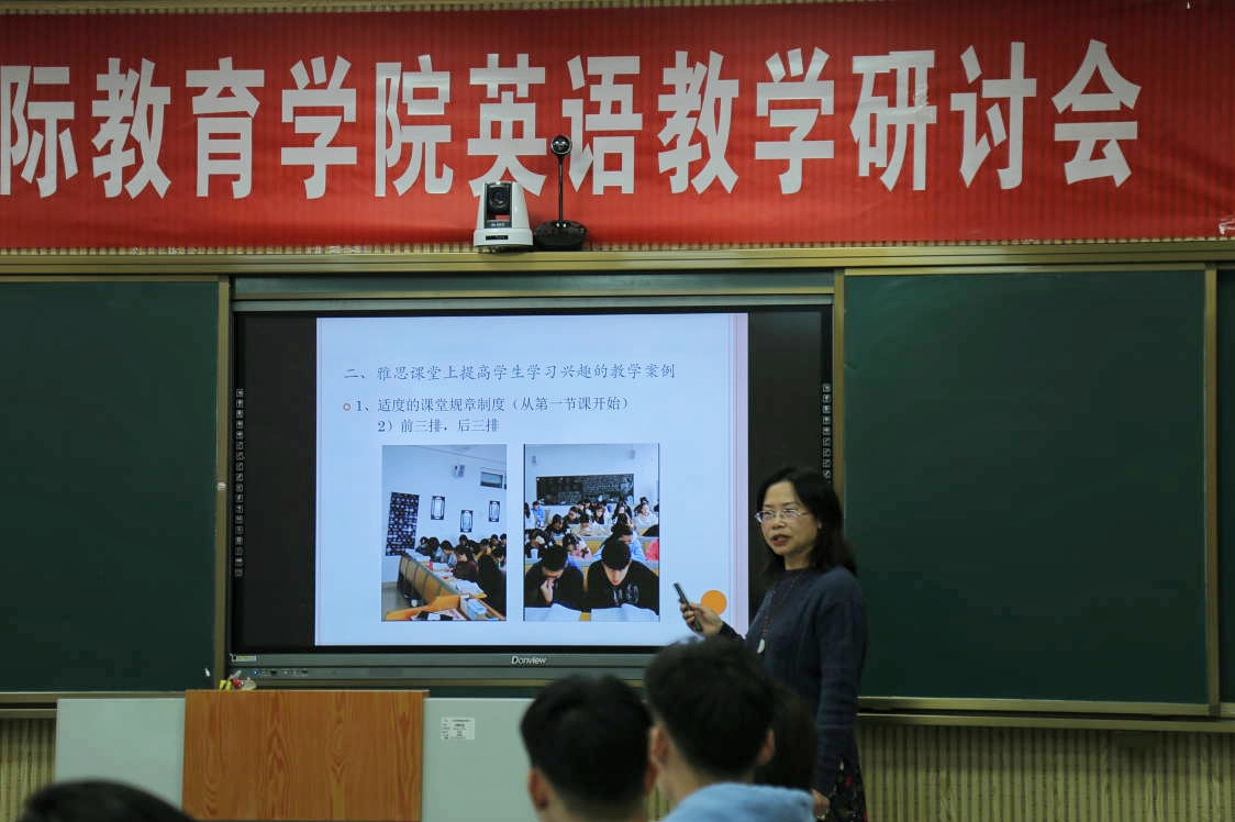 与会者针对我院学生英语听说读写水平、教学现状、存在问题及教学法进行了深入研讨。外国语学院杨恩莲、国教院英语教研室李斐然、司文政、李津琪四位老师分别发言。他们根据雅思英语考试要求,从听、说、读、写四个方面,结合调查数据,科学准确地分析了目前我院学生的学习需求、英语教学存在的问题和今后改革提升的方向。教师发言之后,领导老师与学生代表进行了亲切交流,认真听取了他们的建议和意见。