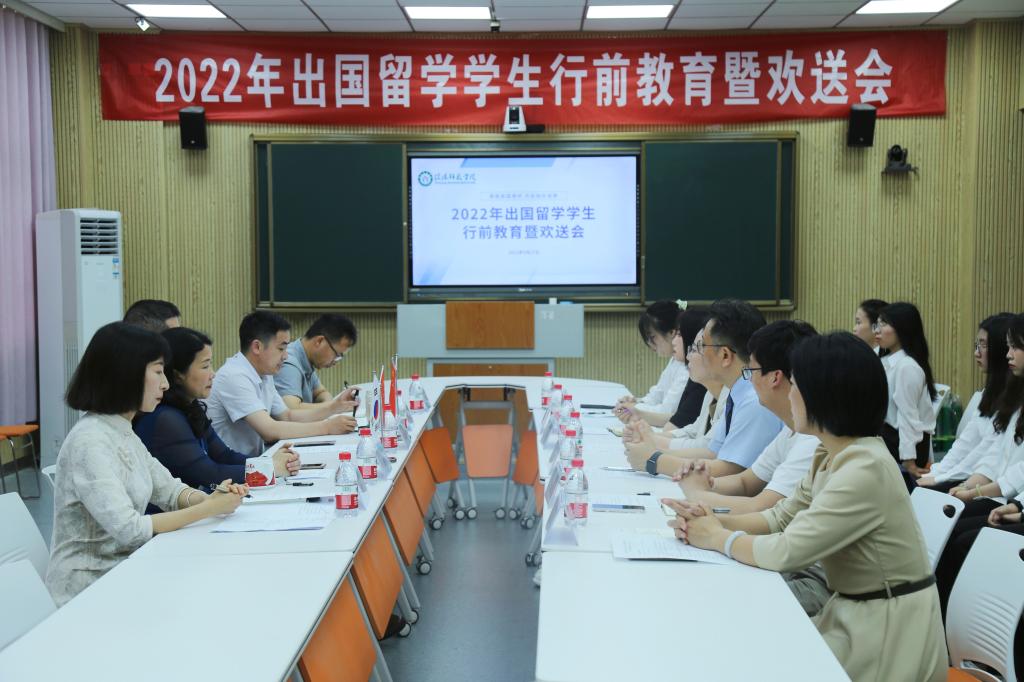 5月27日下午,太阳成集团tyc97282022年度中外合作办学出国留学学生行前教育会议暨欢送仪式隆重举行。副校长余本海出席欢送仪式,国际交流合作处、教务处、学工部等职能部门负责任人,中外合作办学相关二级学院院长以及太阳成集团tyc9728班子成员和韩国语外教等到场参加。