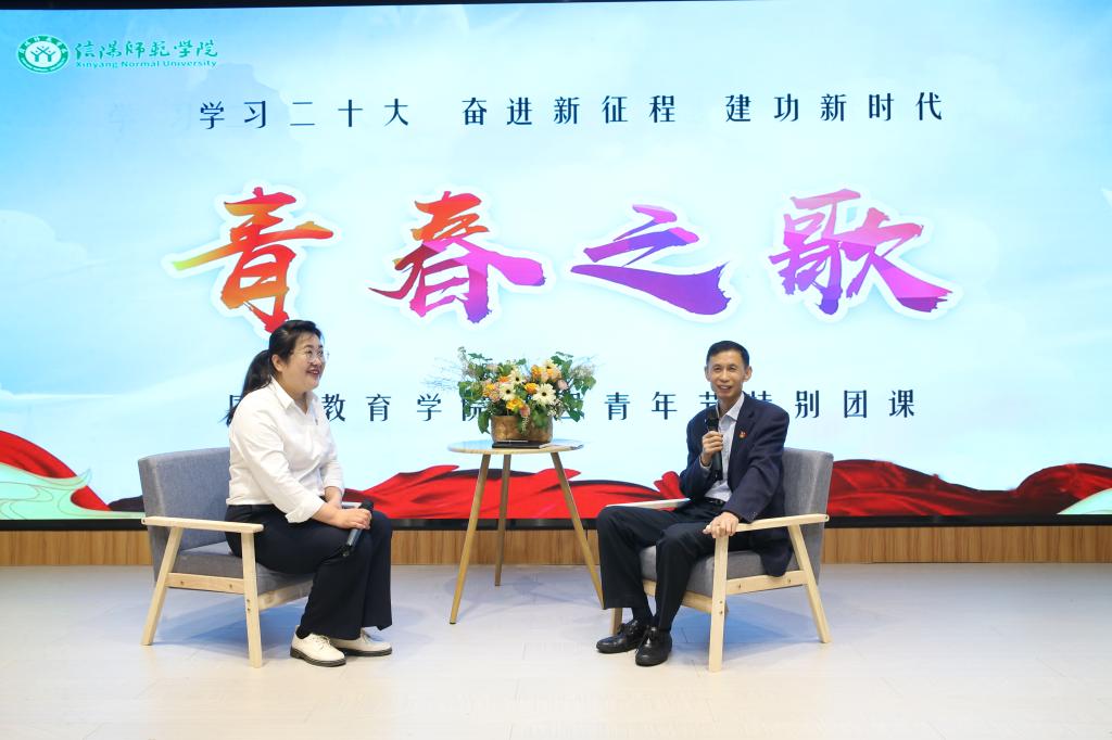 校党委副书记、工会主席岳宗德以“信仰·扎根”开篇,分享了自己扎根大别山革命老区玉汝于成、踔厉奋发的艰苦求学经历和敬业奉献,投身教育事业的职业选择过程,并就青年学子如何传承五四精神、担好时代使命提出了三点期望。一要坚定信仰,襟怀家国。要始终与时代同步伐,与民族共命运、自觉担负起时代赋予的使命职责,自觉践行请党放心、强国有我的铮铮誓言。二要自强自立,勇毅拼搏。要勇于从逆境中奋起,于坎坷中奋斗,在艰险中砥砺向前。三要开拓进取,求实创新。要以真学问、真本领、真成果奉献国家、服务人民,用实际行动响应党的号召,在青春赛道上跑出当代青年的最好成绩!