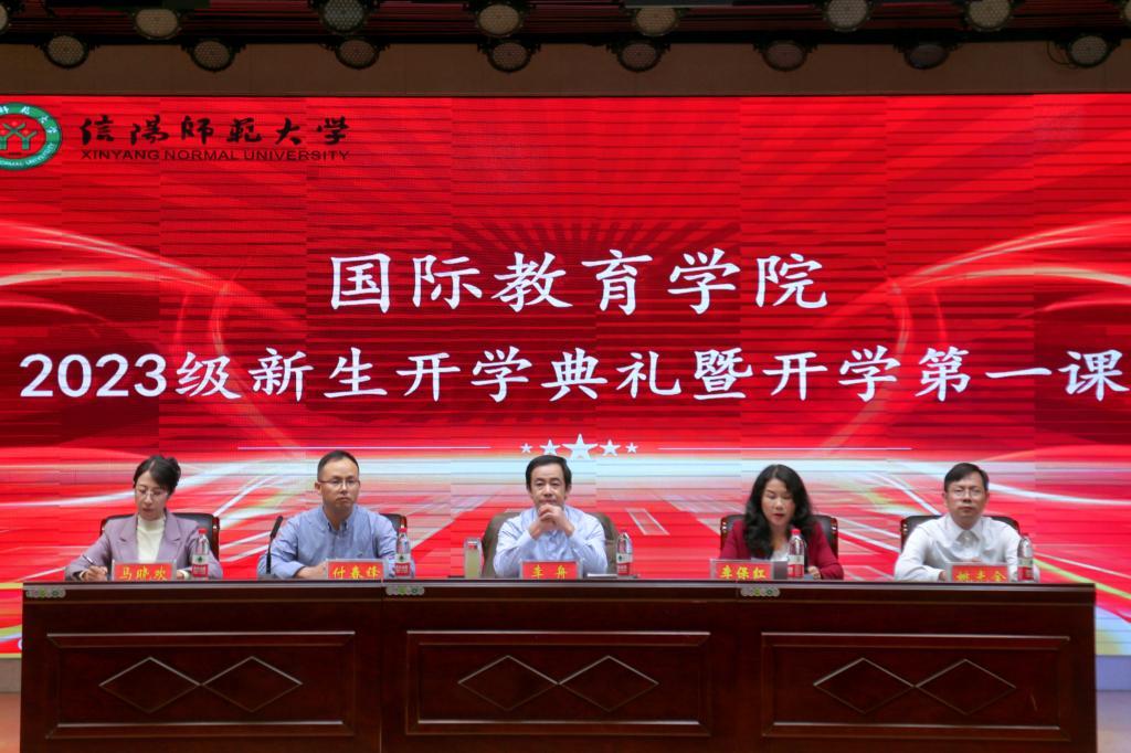 10月12日晚,太阳成集团tyc9728在理科楼报告厅隆重举行2023级新生开学典礼暨开学第一课。党委书记李舟、院长李保红、党委副书记付春锋、副院长姚光金、马晓欢出席。语言课教师、辅导员班主任及2023级全体新生参加。付春锋担任主持。