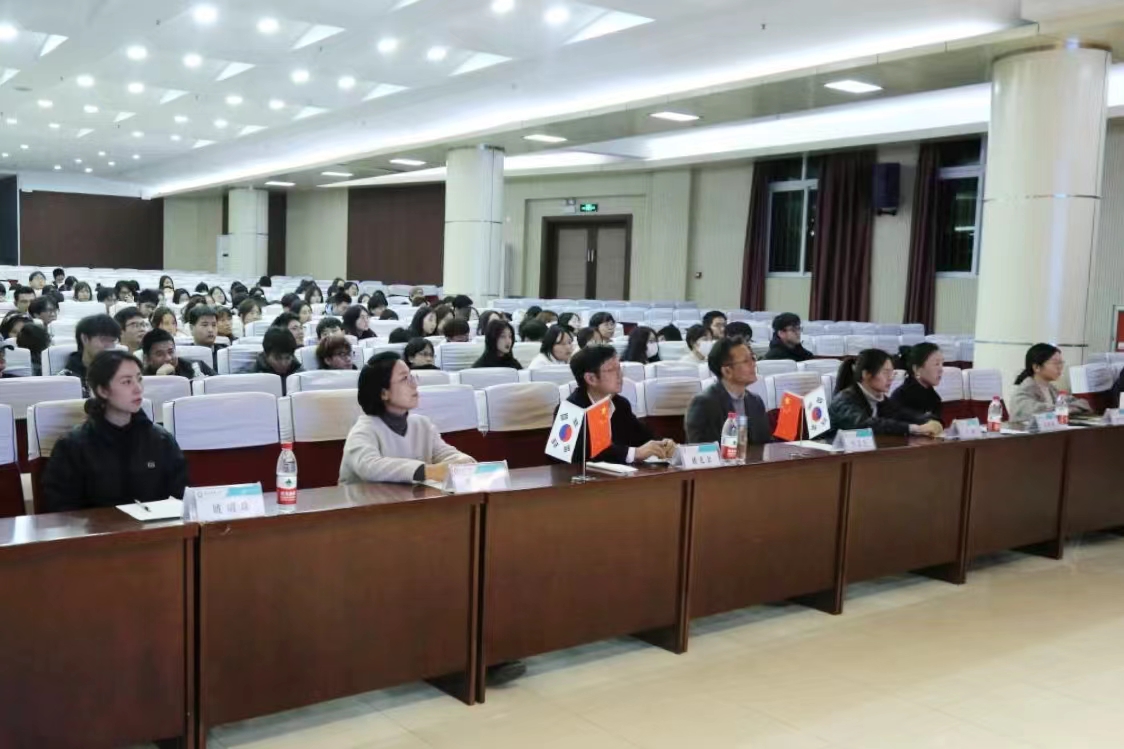11月28日,太阳成集团tyc9728在理科楼报告厅召开2023年中外合作办学学生赴韩国汉阳大学留学动员会。副院长姚光金,外籍韩语教师白炅翰、朴信爱,优秀留学生代表张乔、我院部分教师及2022级生物技术、土木工程专业全体学生参加动员会。