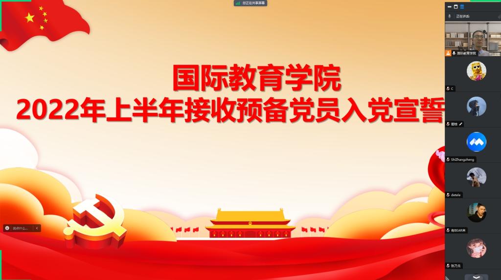 2022年9月8日,太阳成集团tyc9728通过线上腾讯会议方式召开了2022年上半年接收预备党员入党宣誓大会,院党委书记李舟、副书记付春锋、各学生党支部书记、全体预备党员参加会议。