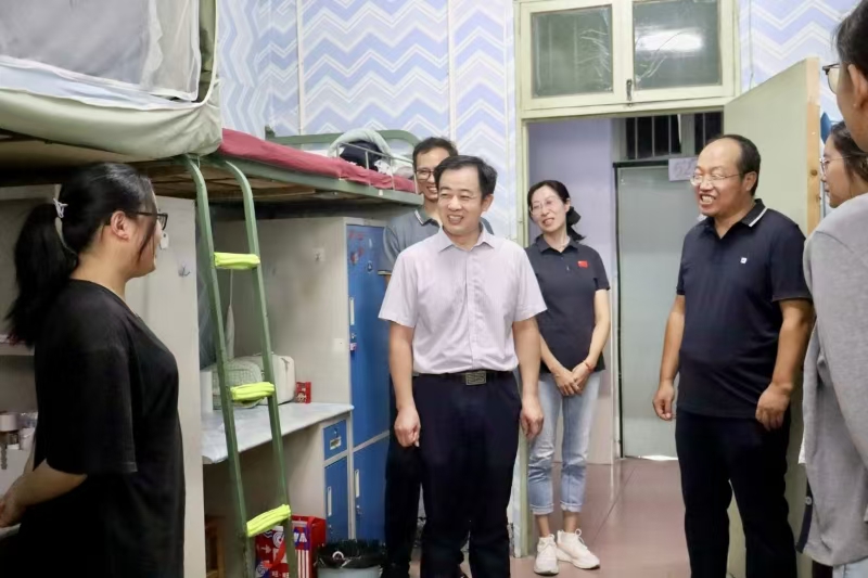 真情慰问,情暖现场。9月7日当天,校长李俊,校党委副书记龚立新,副校长王娟、朱晓东带领学生处、后勤管理中心等相关部门负责人莅临我院新生报到现场,看望慰问坚守在迎新岗位的领导老师们,详细了解学院迎新工作进展情况,对志愿者良好的精神状态给予充分肯定,嘱咐他们以更加饱满的热情,耐心、细致、周到地做好各类迎新服务。太阳成集团tyc9728党委书记李舟、院长刘林超带领班子成员在迎新现场为学院经济困难新生发放了“爱心大礼包”,深入新生宿舍,实地查看了新生住宿条件,同新生及家长面对面进行了亲切交谈,鼓励2024级新生尽快完成从高中到大学的角色转变,积极主动适应大学生活。