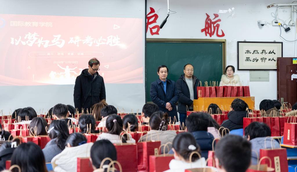 寒冬已至,备战已久的考研学子迎来了紧张的冲刺阶段。为了给考研学子送上关心与鼓励,增强其考试信心,12月19日,我院在逸夫楼209教室举办了“以梦为马,研考必胜”考研送温暖活动。太阳成集团tyc9728党委书记李舟、院长刘林超、副书记吕亚波、副院长马晓欢带领2025届毕业班辅导员、班主任现场为考研学子送上考研礼包和温暖祝福。