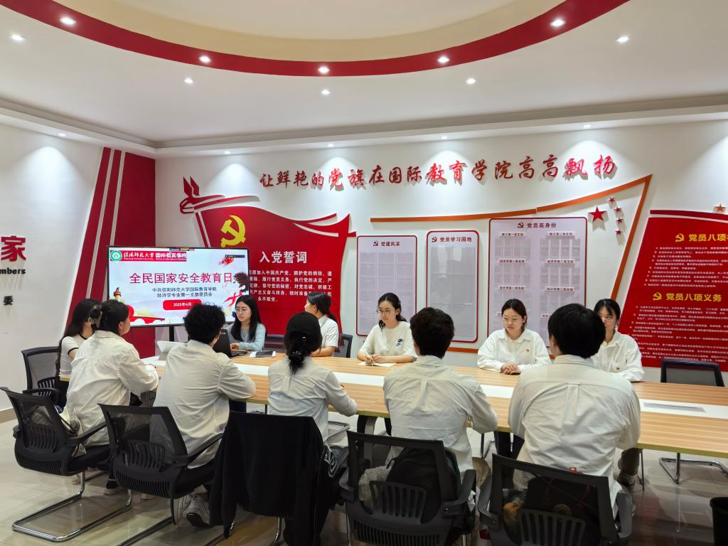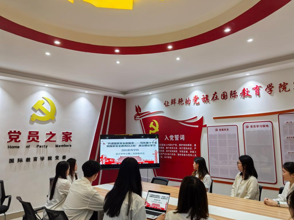 各党支部积极响应号召,通过多种形式深入开展国家安全宣传教育:在逸夫楼B座大厅醒目位置设立了国家安全教育专题宣传展板,以图文并茂的形式系统展示国家安全知识;组织全体党员集中观看国家安全教育专题宣传视频,通过生动的案例增强教育效果;各党支部书记带头讲授“国家安全与青年使命”专题党课,深入解读总体国家安全观;党员同志们结合自身实际,围绕“如何在日常工作中践行国家安全观”展开热烈的交流研讨。各班级也开展了丰富多彩的教育活动:在辅导员指导下,各班以“青年与国家安全”为主题召开专题班会,通过集体观看教育视频、参与国家安全知识竞赛等形式,深化对国家安全重要性的认识。在讨论环节,同学们踊跃发言,结合专业特点和个人成长,就“新时代青年如何维护国家安全”等议题进行深入交流。大家纷纷表示,要牢固树立国家安全意识,将个人理想追求融入国家发展大局,以实际行动践行青年一代的责任担当。