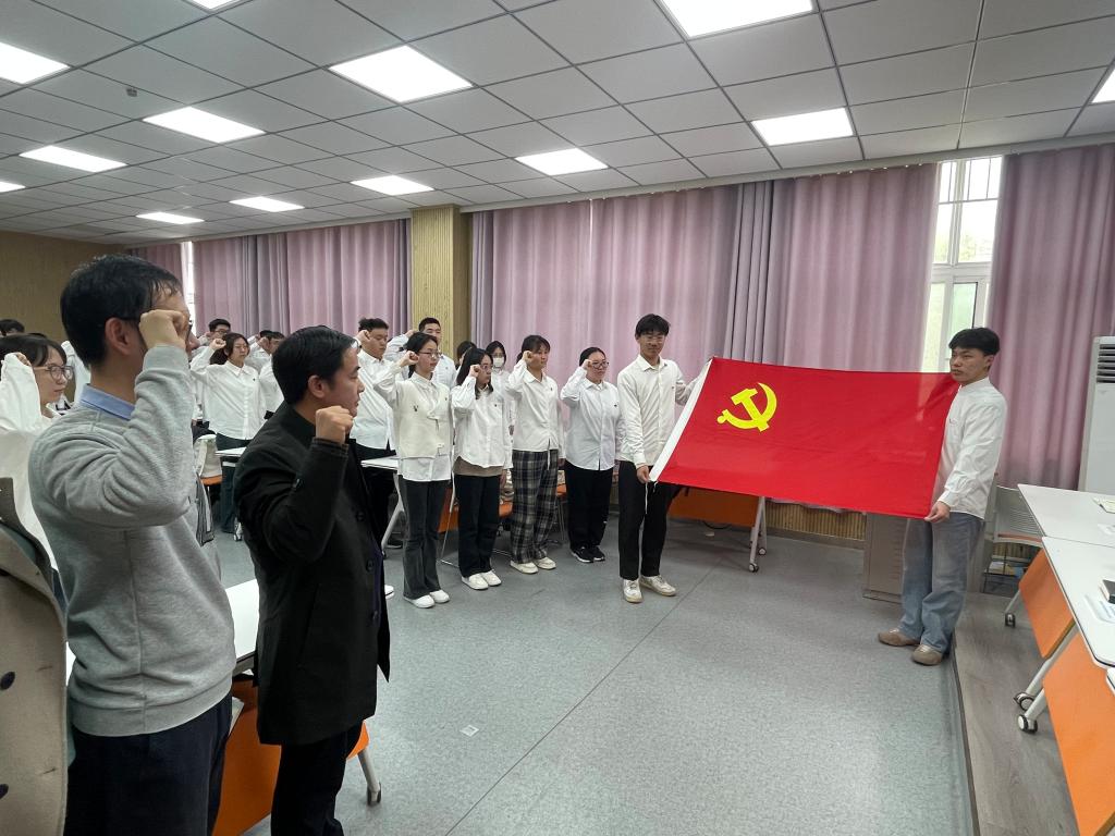 会上,专职组织员吴浩宣读了中共信阳师范学院委员会组织部关于同意接收李宗鹤等41名党员的决定,带领全体预备党员面向党旗进行了庄严宣誓。预备党员代表张乃戈就如何成为一名合格的共产党员在党旗下作了表态发言。