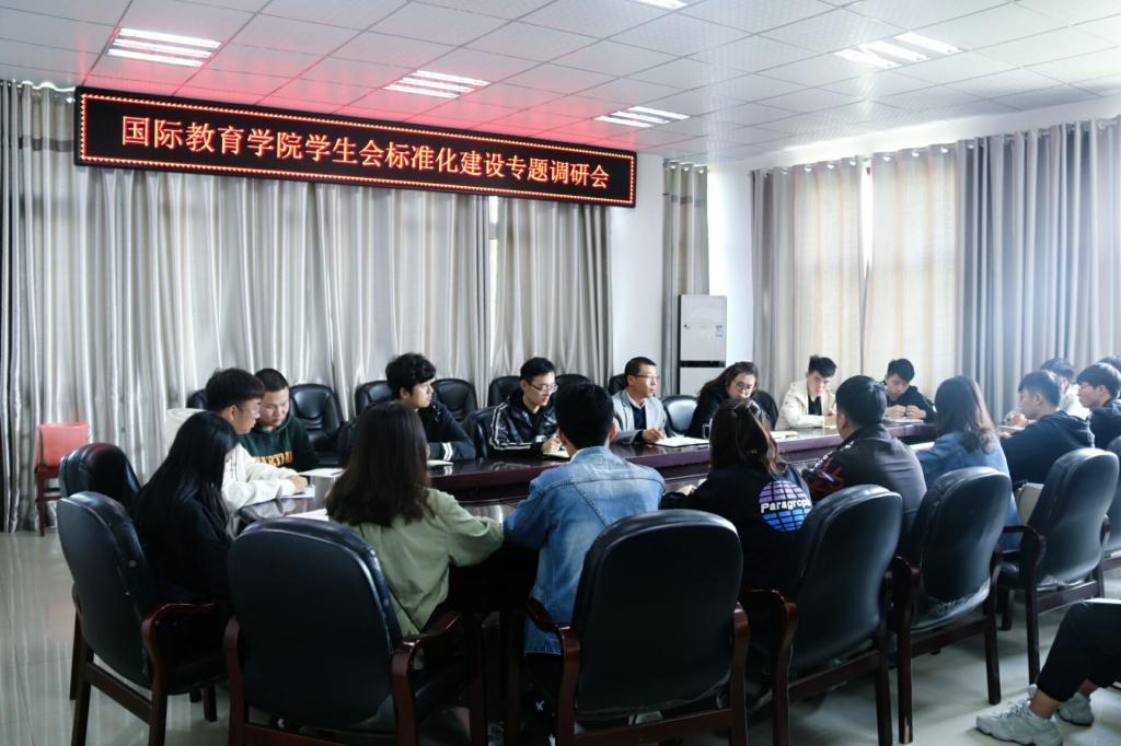 10月29日上午,太阳成集团tyc9728党委副书记姚新春在逸夫楼302会议室主持召开学生会标准化建设专题调研会,院学生会主席、副主席、各分管部门部长参加了会议。