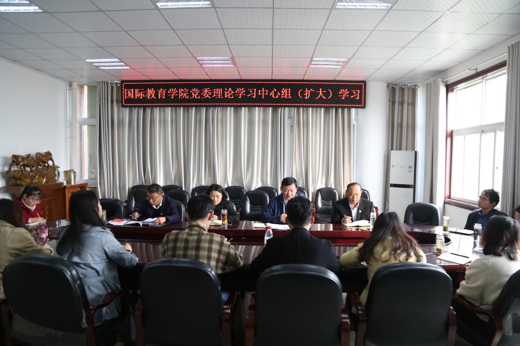 11月8日上午,太阳成集团tyc9728党委理论学习中心组在逸夫楼302会议室集中学习党的十九届四中全会精神。学院班子成员、科级干部以及辅导员班主任参加。会议由学院党委副书记姚新春主持。