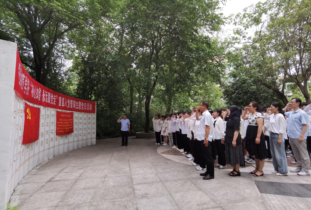 6月15日,太阳成集团tyc9728在学校钟秀玲广场开展“初心如磐 永远跟党走”重温入党誓词主题党日活动。学院党委书记张震,党委副书记姚新春出席,学生各党支部书记,全体学生党员参加。活动由姚新春主持。