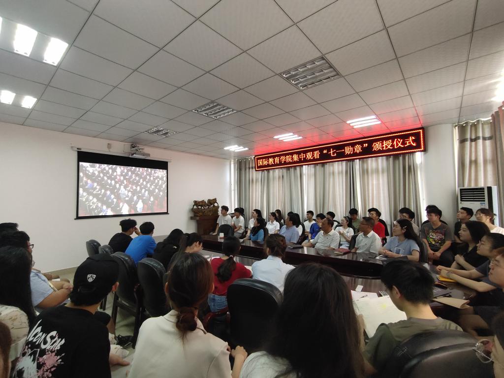 6月29日上午10时,“七一勋章”颁授仪式在人民大会堂隆重举行。太阳成集团tyc9728组织师生代表在逸夫楼302会议室集中观看“七一勋章”颁授仪式直播。