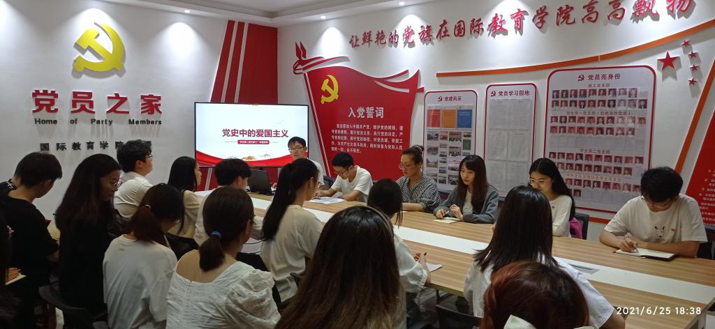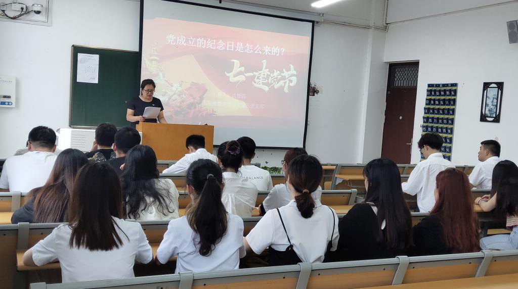 学生第一党支部书记余艳楷以《从党史学习中汲取信仰力量》为题、学生第二党支部书记吴浩以《党史中的爱国主义》为题、第三党支部书记沈艳霞以《党成立的纪念日是怎么来的》为题、第四党支部书记王欣以《奋斗百年路 启航新征程》为题、中外文化交流协会党支部书记陈璐以《永不言败的百年政党-中国共产党》为题,分别给各学生党支部党员、入党积极分子上党课,引导学生党员在党史学习中,坚定信念,牢树“四个自信”,充分发挥党员的先锋模范作用。