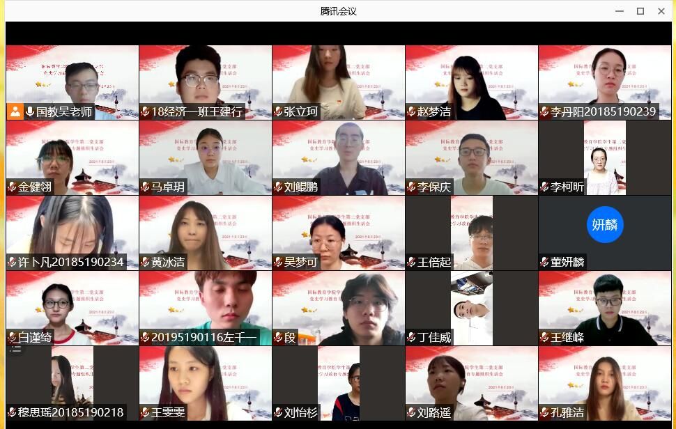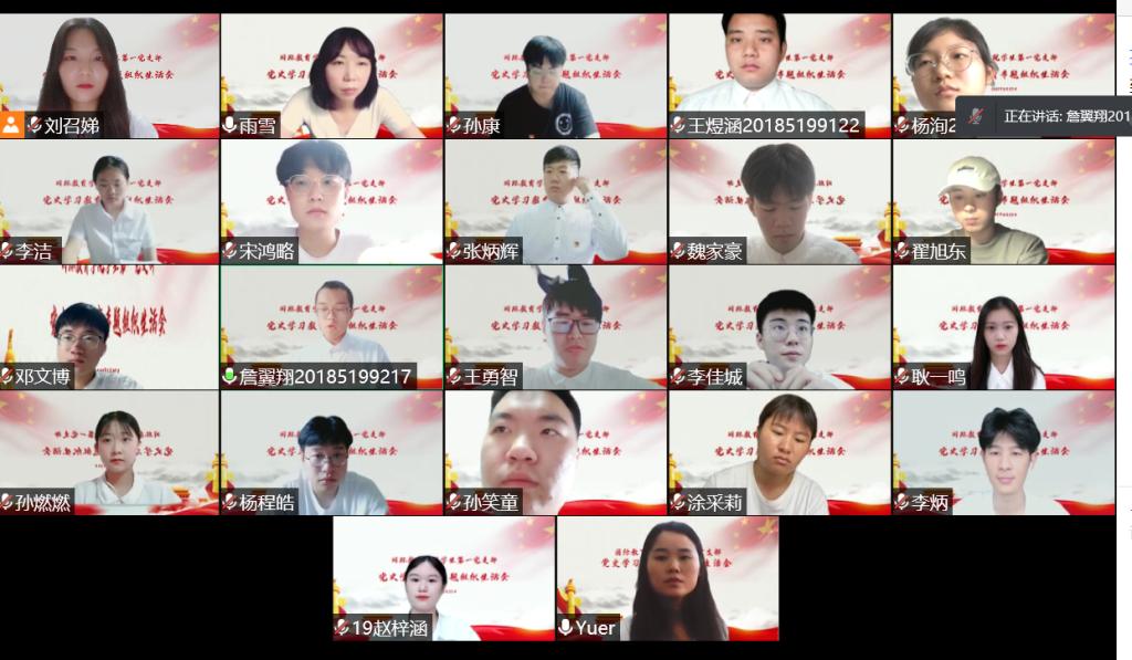 根据校党委、学院党委关于召开党史学习教育专题组织生活会的要求,8月23日,太阳成集团tyc9728各学生党支部党史学习教育专题组织生活会采取腾讯网络视频会议形式开展。