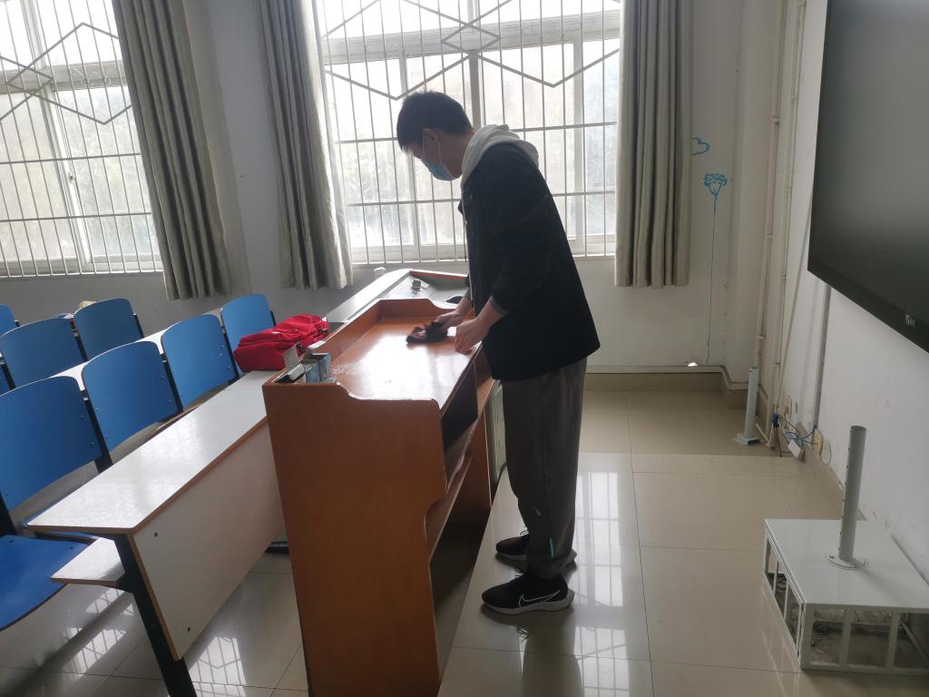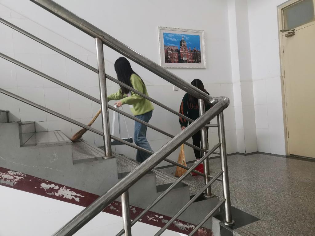 我院62名党员发展对象在学生会组织部带领下,按照前期任务分工,到指定区域打扫楼梯、地面,擦洗楼道护栏、教室玻璃、黑板、课桌、讲桌,捡拾垃圾、杂物,清理办公室杂物,他们以严谨认真的态度落实任务,用服务师生的实际行动充分发扬先锋模范带头作用,为师生营造干净、卫生的工作和学习环境作出了贡献。