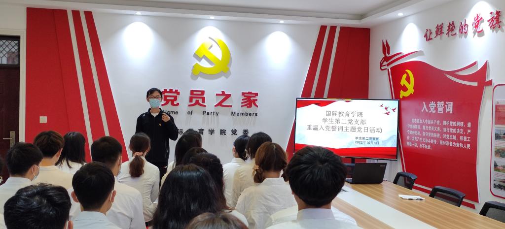 生物技术专业党支部以“重温红色故事、致敬革命先烈”为主题,开展红色观影会,在荧幕面前通过一个个动人故事,重温建国以来的大事要事,感悟社会生活各方面发生的巨大变化,进一步厚植家国情怀;经济学专业党支部开展“重温入党誓词”主题活动,在建国73周年之际,支部全体党员面向党旗进行庄严宣誓,重温入党誓词,牢记初心使命,进一步坚定了为民族复兴持续贡献青春智慧力量,砥砺前行,不懈奋斗的决心;会计学专业第一党支部通过志愿服务活动践行党员先锋模范作用,支部党员认真打扫逸夫楼各教室、办公室卫生,为师生工作学习营造干净整洁舒适环境。他们还化身为核酸检测志愿者,协助维持检测秩序,确保检测工作平稳有序开展;会计学专业第二党支部以“回忆经典,礼赞国庆”为主题,在支部书记带领下共同学习讨论‘中国奇迹’背后的必然逻辑;中外文化交流协会党支部全体党员围坐在一起,通过圆桌会议的形式,畅谈对祖国发展变化的感受和体会。